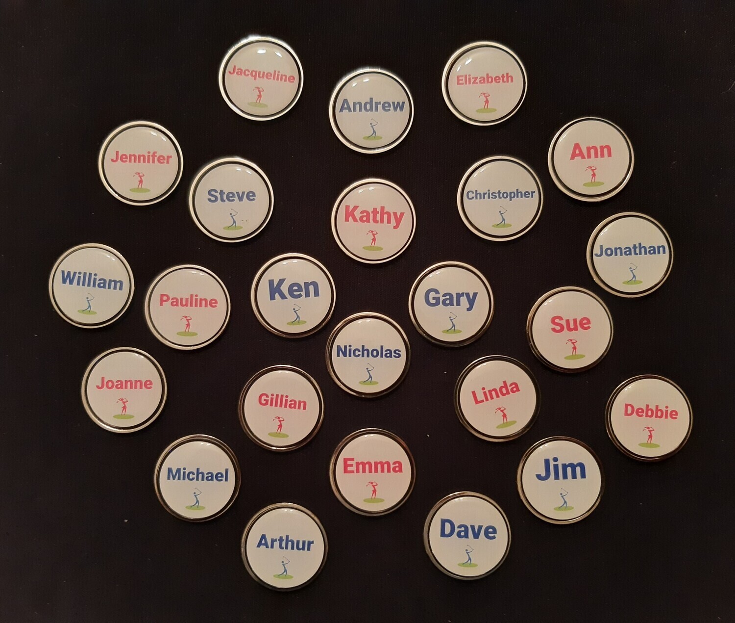 High quality Personalised 30mm Nickel Epoxy Dome Ball Marker with a vast choice of names to choose from.