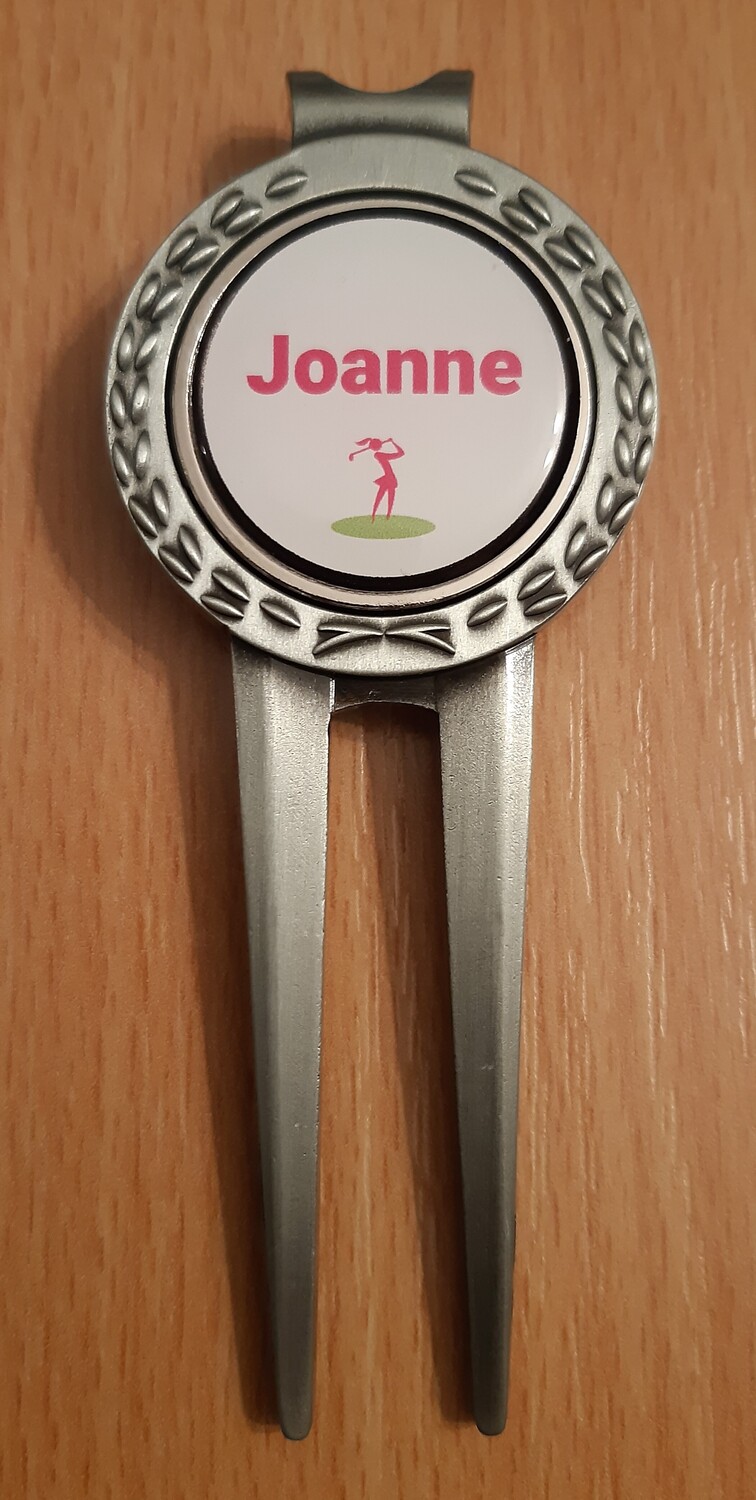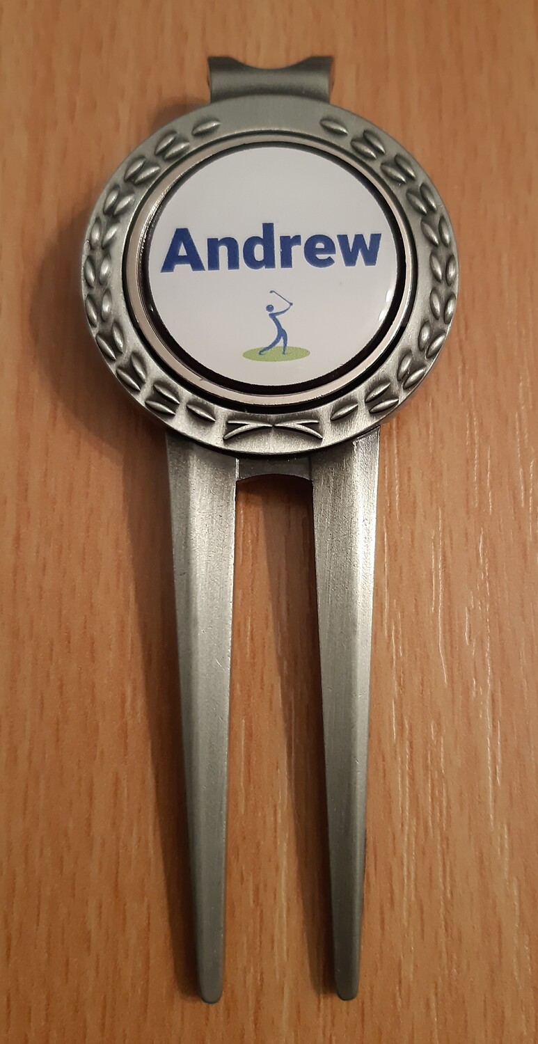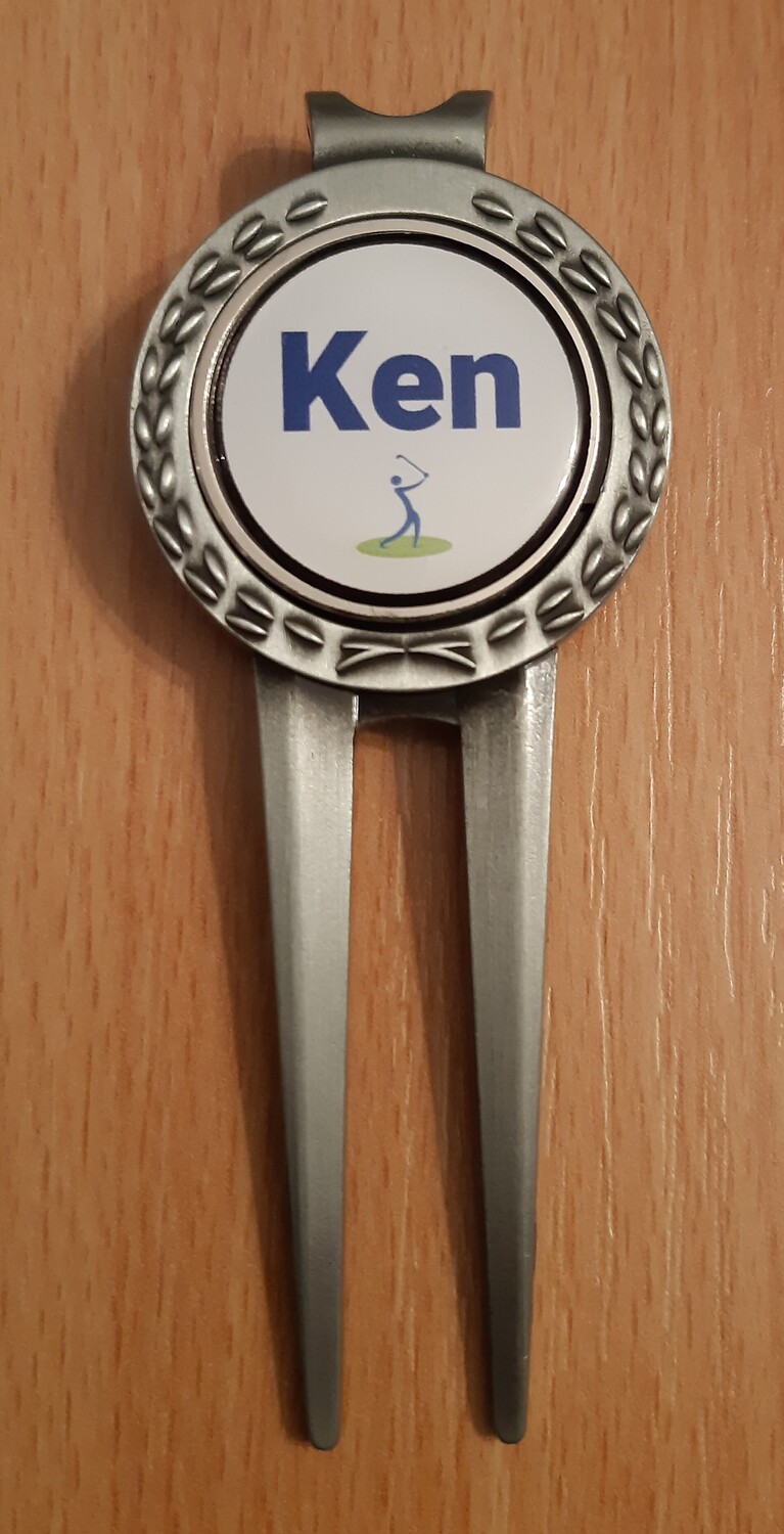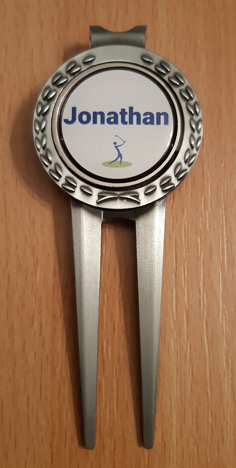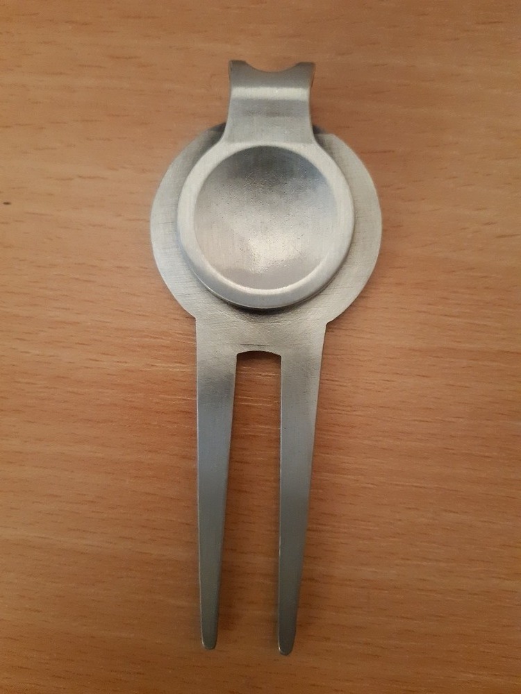 The Pitchmark Repairer also comes with our specifically designed Personalised 30mm nickel ball marker which is held in place by a strong magnet and is very easily removed by the special push and slide design.