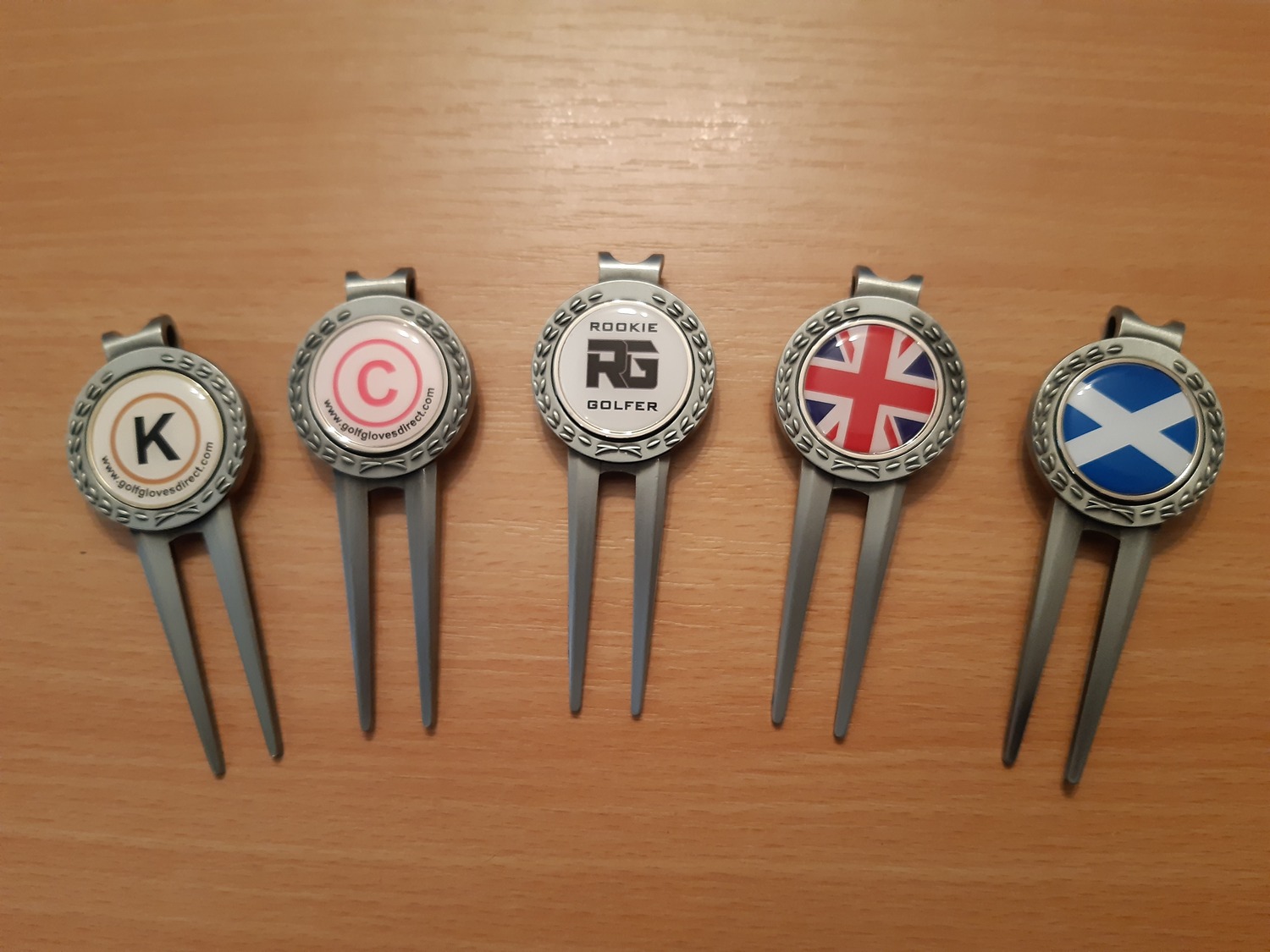 There is a vast range of 30mm Ball Markers which can be supplied with the Pitchmark Repairer including all the letters of the alphabet so you can have your own initial, country flags as well as good selection of novelty ball markers.