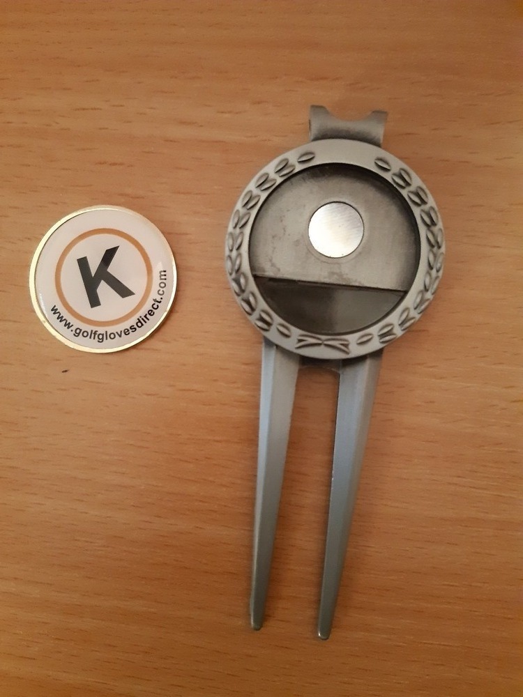 The Pitchmark Repairer also comes with our specifically designed 30mm nickel ball marker which is held in place by a strong magnet and is very easily removed by the special push and slide design.